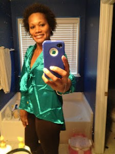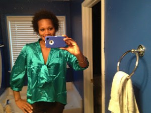 This has to be the most rewarding part about blogging, especially when you’re just starting out! I am so thrilled to share these pics from one of my Blissful Followers, Le’Chic in Atlanta, GA! She found her emerald-colored, bow-tie blouse for $16.99 at Rainbow! What a steal?! According to Le’Chic, this blouse comes in a rich chocolate-brown, classic tan, and a bold fuchsia pink! Thanks again for your blissful venting!